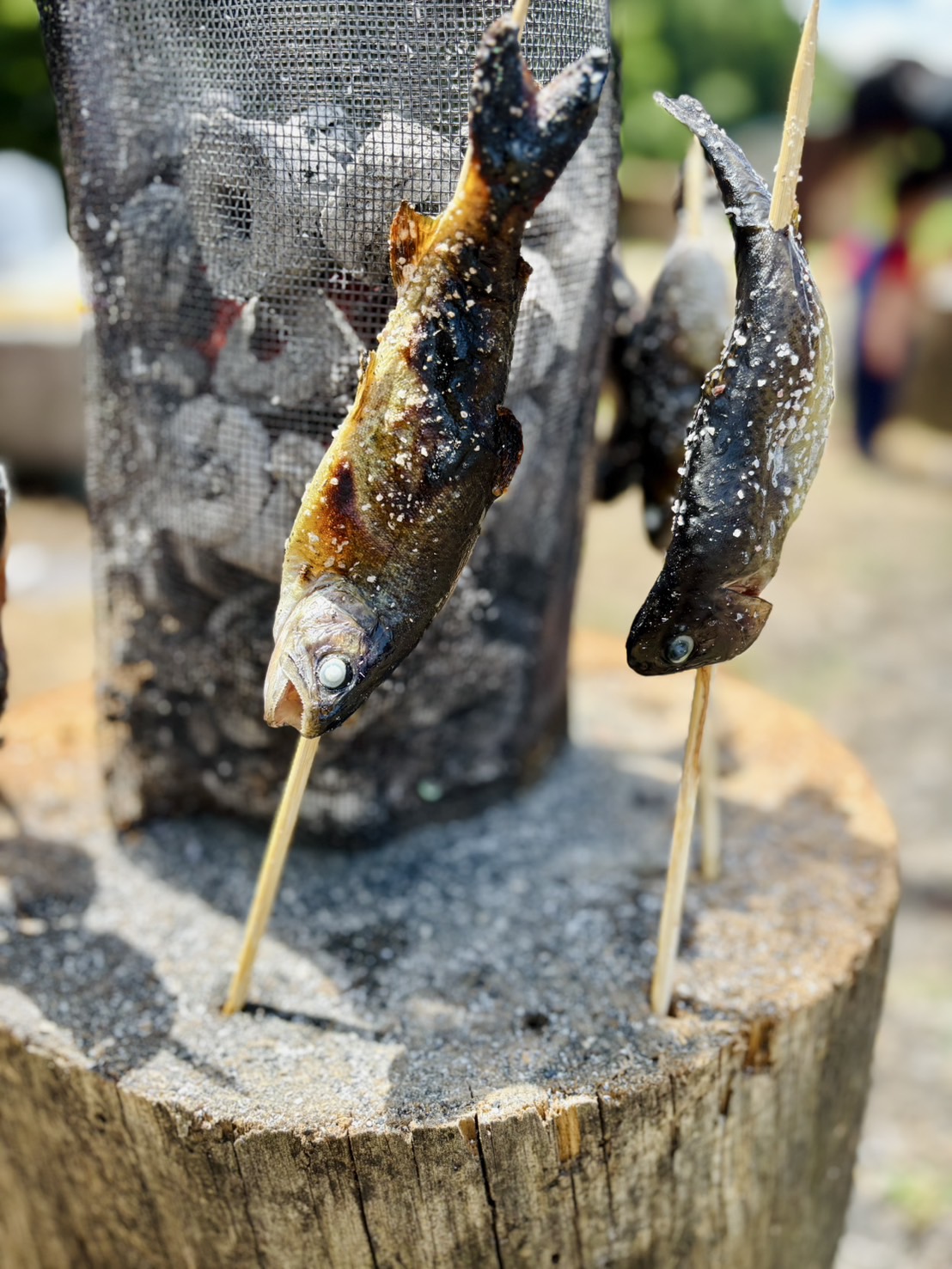 捕まえた魚はそれぞれ自分たちではらわたを取り除きます。